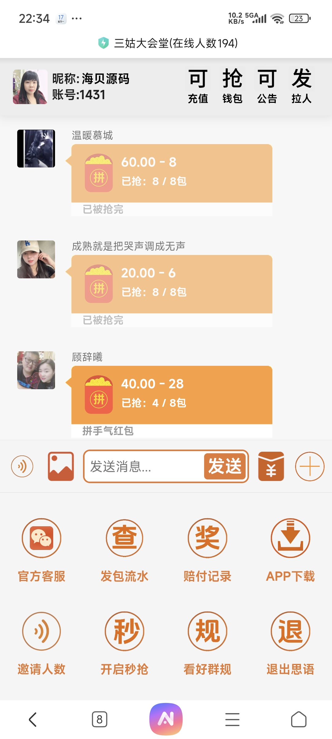 admin H5源码 17天前 海贝亲测-H5多雷8个包带聊天室 这个是市面上没有几个人有的东西,好东西h5扫雷多雷,8包,带聊天功能对接的易支付,可以发文字和图片的聊天室,具体看图,也就是以前的扫雷二开来的,带注册登录,可以封装成App 钻石价 1 折当前隐藏内容需要支付888贝壳已有0人支付 登录购买 海贝源码 » 海贝亲测-H5多雷8个包带聊天室